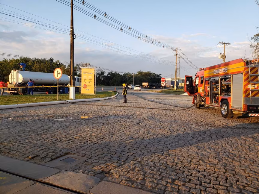 Colisão entre caminhões causa vazamento de combustível na rodovia Antônio Heil 21/08/2020 • Redação O Município