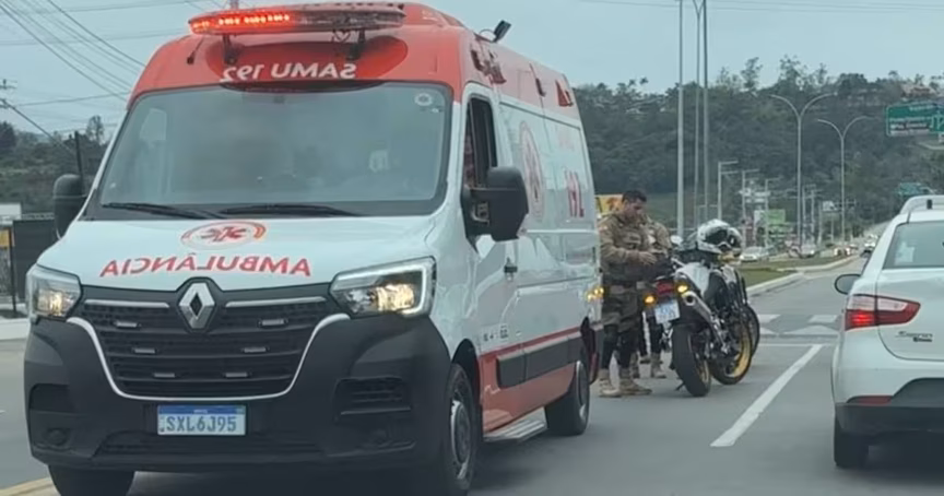 Colisão entre moto e carro deixa duas pessoas feridas na rodovia Antônio Heil, em Brusque 07/09/2025 • Otávio Timm