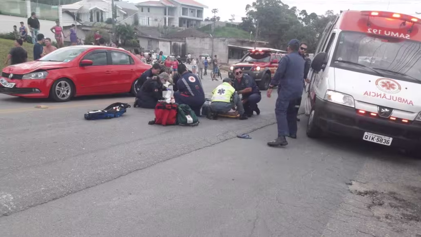 Homem fica ferido em acidente entre moto e bicicleta, na rodovia Ivo Silveira 29/03/2018 • Redação O Município