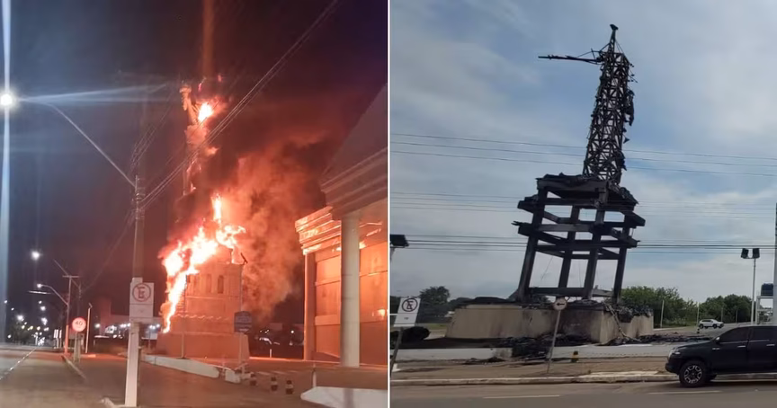 VÍDEO – Dupla incendeia estátua da Havan em Rondônia; empresa oferece recompensa de R$ 100 mil por informações de autores