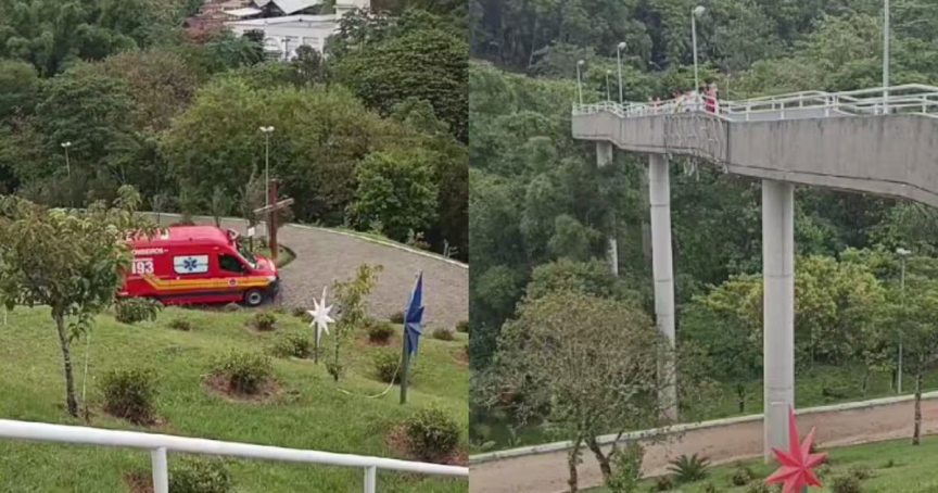 VÍDEO – Socorristas são acionados após adolescente cair de passarela no santuário da Madre Paulina, em Nova Trento 25/11/2024 • Vitor Souza