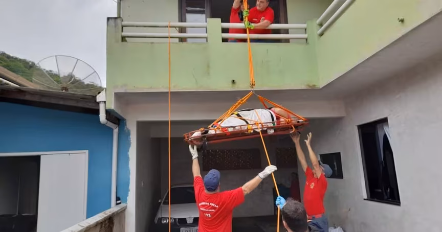 Bombeiros içam gestante para resgatá-la após queda dentro de casa, em Gaspar 24/02/2023 • Redação O Município