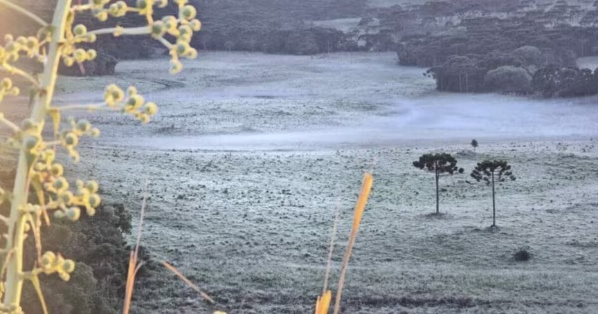 Cena de filme: geada cobre campos da Serra catarinense após madrugada gelada 17/12/2025 • Redação O Município