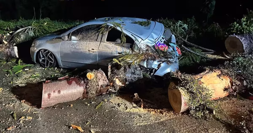 Vendaval derruba árvore de 25 metros em cima de carro no Oeste de Santa Catarina 27/09/2023 • Otávio Timm