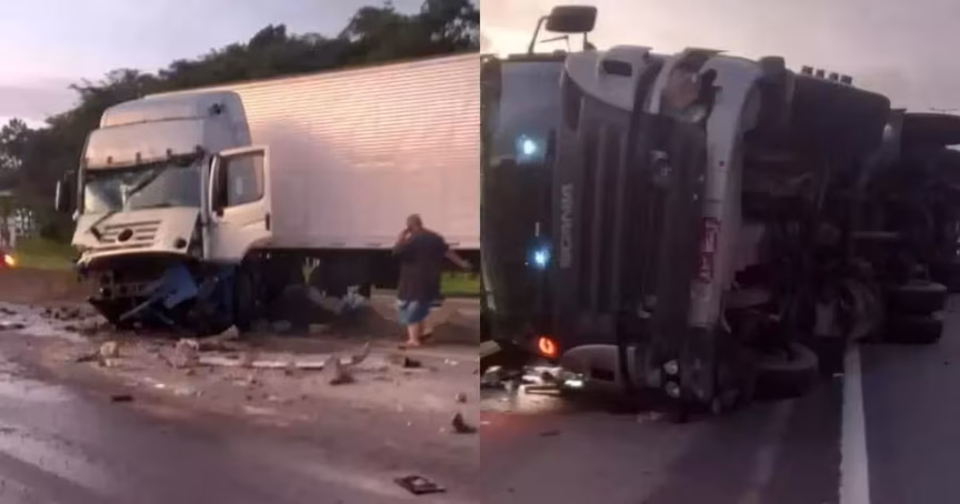 VÍDEO – Acidente entre carretas gera filas na BR-101