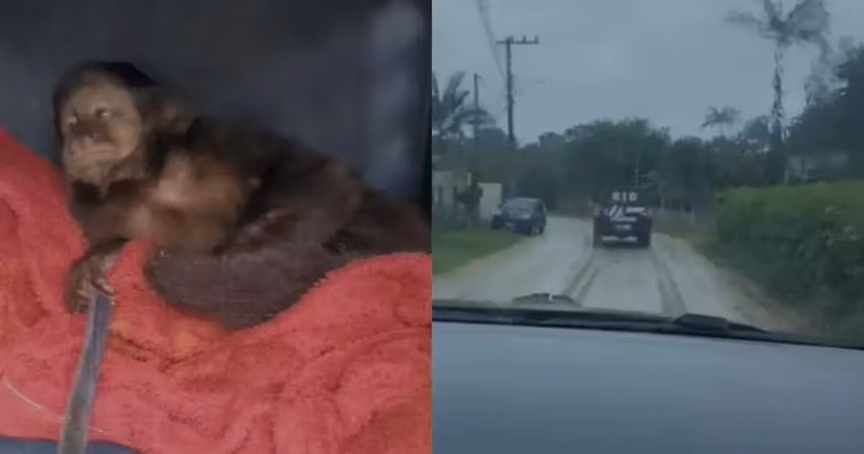 VÍDEO – Macaco-prego é resgatado e homem é preso por fraude em São Francisco do Sul