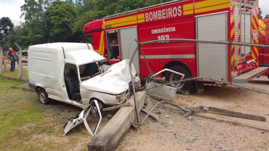 Mulher fica presa às ferragens após bater em um pilar, em São João Batista