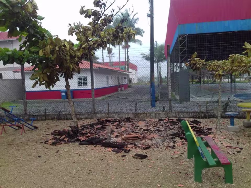 Casinha de madeira de escola é incendiada no Fernandes, em São João Batista
