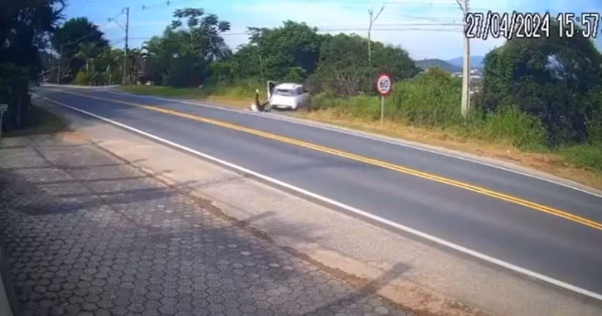 VÍDEO – Casal salta de carro em movimento e joga veículo em ribanceira, em São João Batista