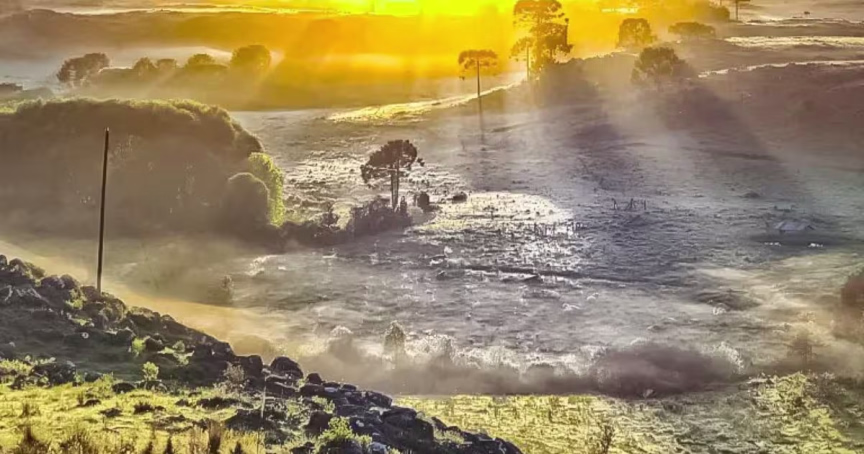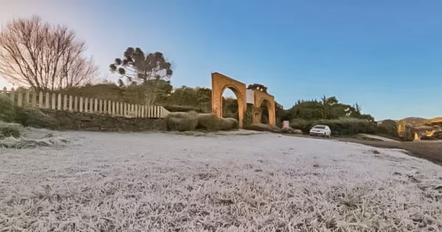 Frio: Serra catarinense começa a sexta-feira pintada com a cor da geada