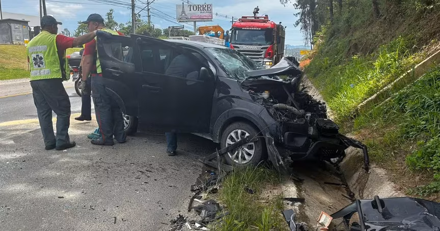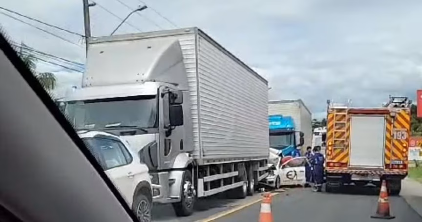 VÍDEO – Motorista fica ferida após carro que conduzia ser prensado por dois caminhões na rodovia Ivo Silveira 11/12/2023 • Vitor Souza
