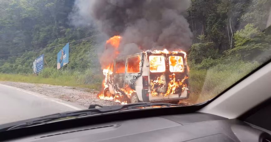 Novas informações são divulgadas de van que pegou fogo na SC-108, em Brusque 17/01/2024 • João Henrique Krieger