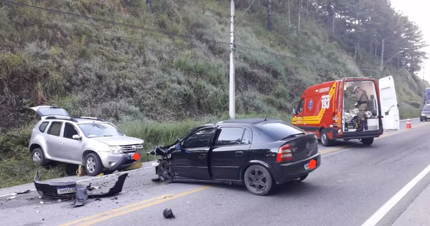 Carro tomba após ser atingido durante ultrapassagem na SC-108, em Brusque 05/02/2023 • Redação O Município