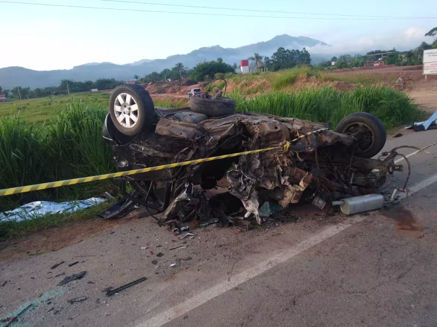 Dois homens morrem em acidente entre dois carros e ônibus na SC-410, em Tijucas 13/03/2021 • Redação O Município