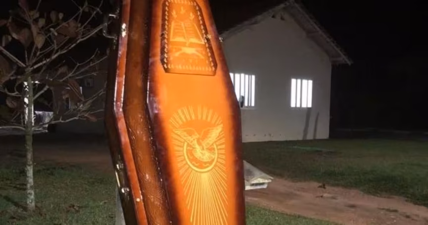 Mulher acorda e encontra caixão na frente de casa no Vale do Itajaí; entenda 06/07/2022 • Redação O Município