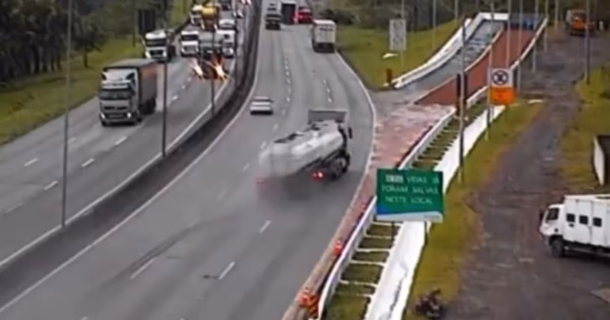 VÍDEO – Ônibus com 28 pessoas fica sem freio e motorista usa área de escape pare evitar acidente na BR-376, entre PR e SC