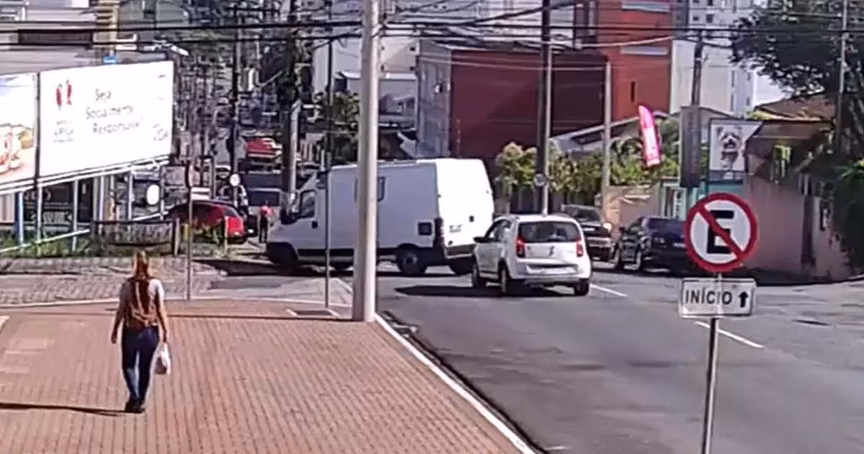 VÍDEO – Câmera registra colisão de van contra poste em Blumenau