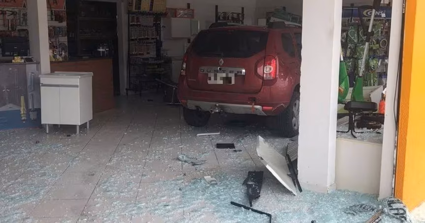 VÍDEO – Carro invade loja de materiais de construção no Dom Joaquim, em Brusque