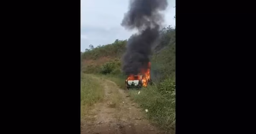 VÍDEO – Imagens mostram momento em que carro usado em assalto à cooperativa pega fogo em Blumenau