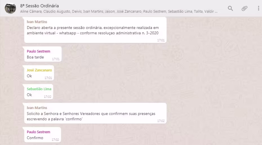 Em sessão pelo WhatsApp, vereadores de Brusque aprovam três projetos