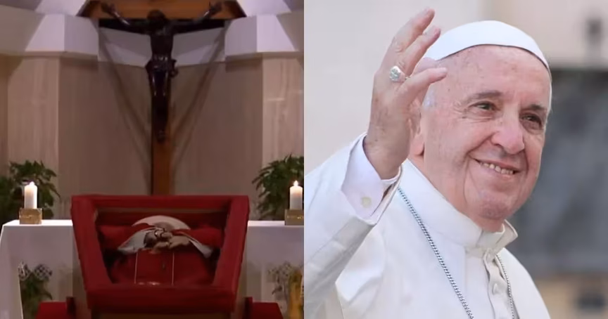 Uma procissão seguirá pela Praça Santa Marta e pela Praça dos Protormártires Romanos, saindo pelo Arco dos Sinos até a praça de São Pedro, entrando em seguida na Basílica Vaticana pela porta central. Diante do Altar da Confissão, o cardeal camerlengo, Kevin Joseph Farrell, conduzirá a liturgia. Depois disso, será aberto o período de visitação à urna mortuária do Papa Francisco.