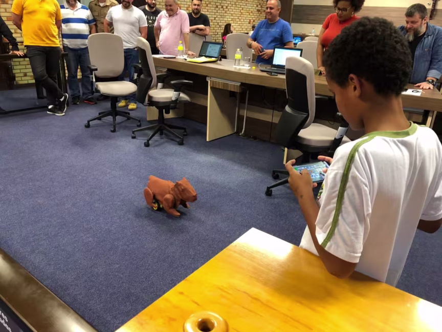 Como demonstração do seu trabalho de robótica, os alunos levaram à Câmara uma capivara robotizada, controlada pelo celular, que chamou a atenção dos vereadores e dos presentes na sessão.