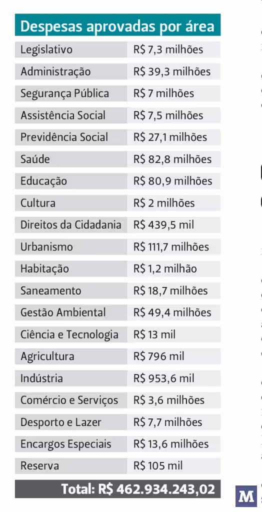 A Câmara de Vereadores aprovou ontem a proposta de Lei Orçamentária Anual (LOA) apresentada pelo governo municipal, que prevê orçamento de R$ 462,9 milhões para tocar todas as ações da prefeitura em 2016.
