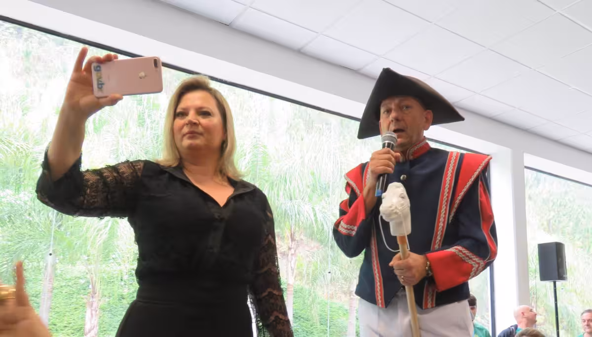 Joice Hasselmann já visitou estados do Norte, Nordeste e agora passa pelo Sul com o foco na defesa da reforma. Seu anfitrião em Brusque, Hang vestiu-se de Dom Pedro I para receber a deputada. "Com Dom Pedro I era 'Independência ou Morte'. Agora é 'Previdência ou morte'", afirmou o empresário.