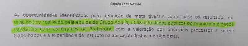 O documento diz que o Instituto Aquila “percorreu diversos órgãos da prefeitura no sentido de buscar informações e coletar dados acerca da gestão pública municipal, como se na prática já estivesse atuando como contratada”.