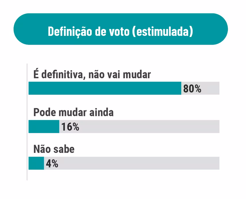 80% dos eleitores responderam que estão com candidato definido e não mudarão o voto no domingo.