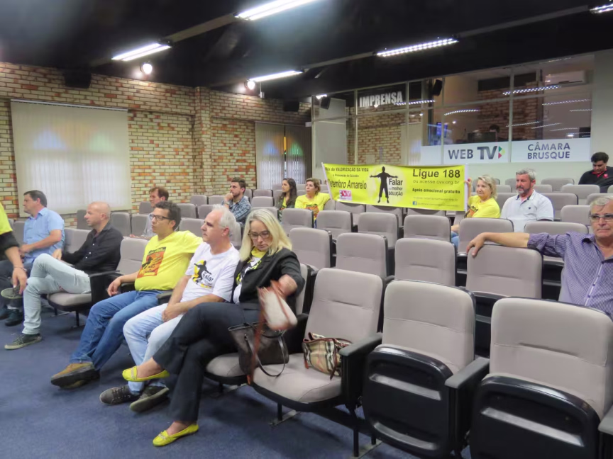 Os membros do Centro de Valorização da Vida (CVV) estiveram na sessão da Câmara de Vereadores de Brusque nesta terça-feira, 19, para falar um pouco sobre o trabalho da entidade na prevenção ao suicídio e também para pedir apoio para a implantação do posto do CVV no município.