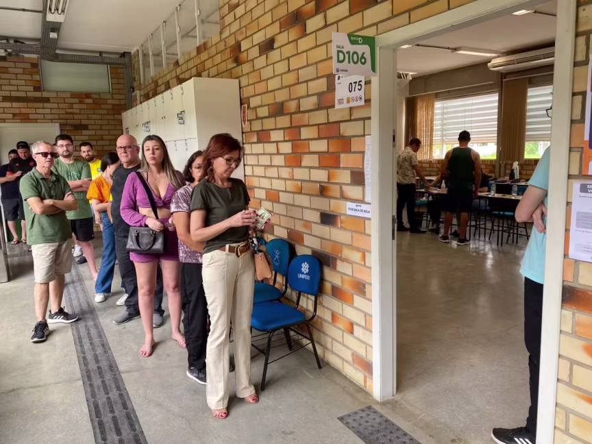 Na manhã deste domingo, 30, o casal Marcelo Luis da Silva, de 48 anos, e Grazieli da Silva, 41, votou no Centro Universitário de Brusque (Unifebe). Enquanto aguardava na fila, Marcelo e Grazieli receberam a videochamada da filha, Fernanda Cristina da Silva, 21, que atualmente está na Irlanda.
