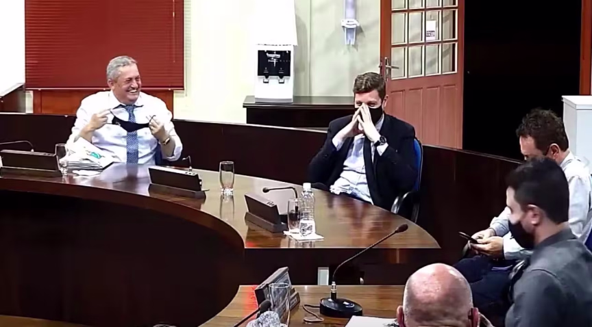 Enquanto a vereadora anunciava, os demais parlamentares até tentaram, mas não conseguiram segurar o riso. “Questão de ordem, pessoal”, diz o presidente da Câmara, Evandro Luis Gava (PP), para tentar controlar as risadas.