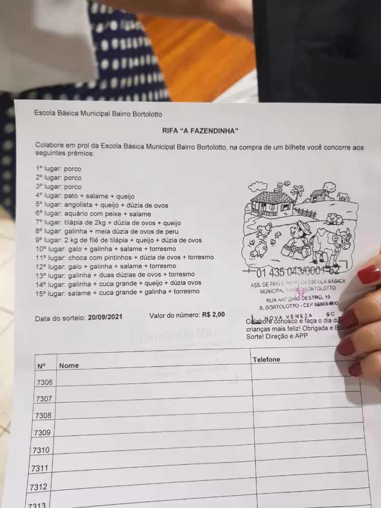 O anúncio de uma rifa realizada pela Escola Básica Municipal Bairro Bortolotto, em Nova Veneza, no Sul de Santa Catarina, feito ao final da sessão da Câmara de Vereadores do município nesta terça-feira, 31, repercutiu nas redes sociais. O motivo: os prêmios variam de porco a salame.