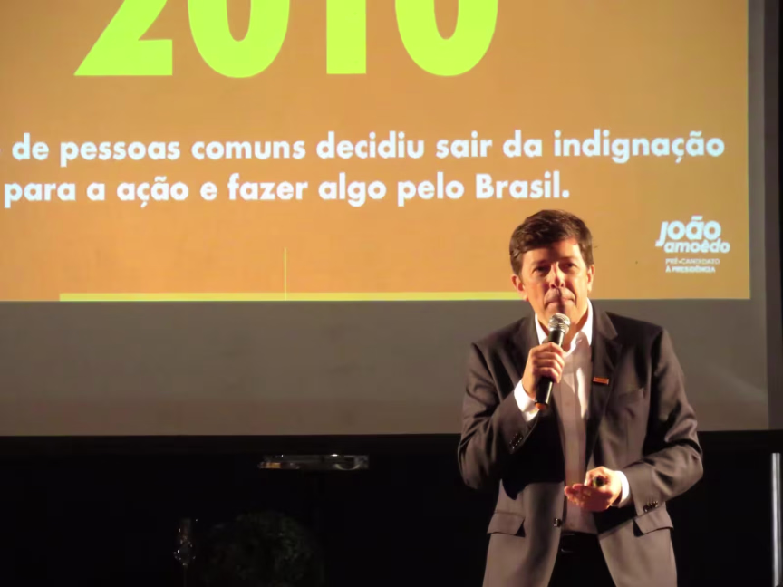 Amoêdo é pré-candidato à presidência da República pelo partido Novo, que ele mesmo fundou, sete anos atrás. Chega à eleição com status de azarão e com tempo limitado de TV para apresentar suas propostas.