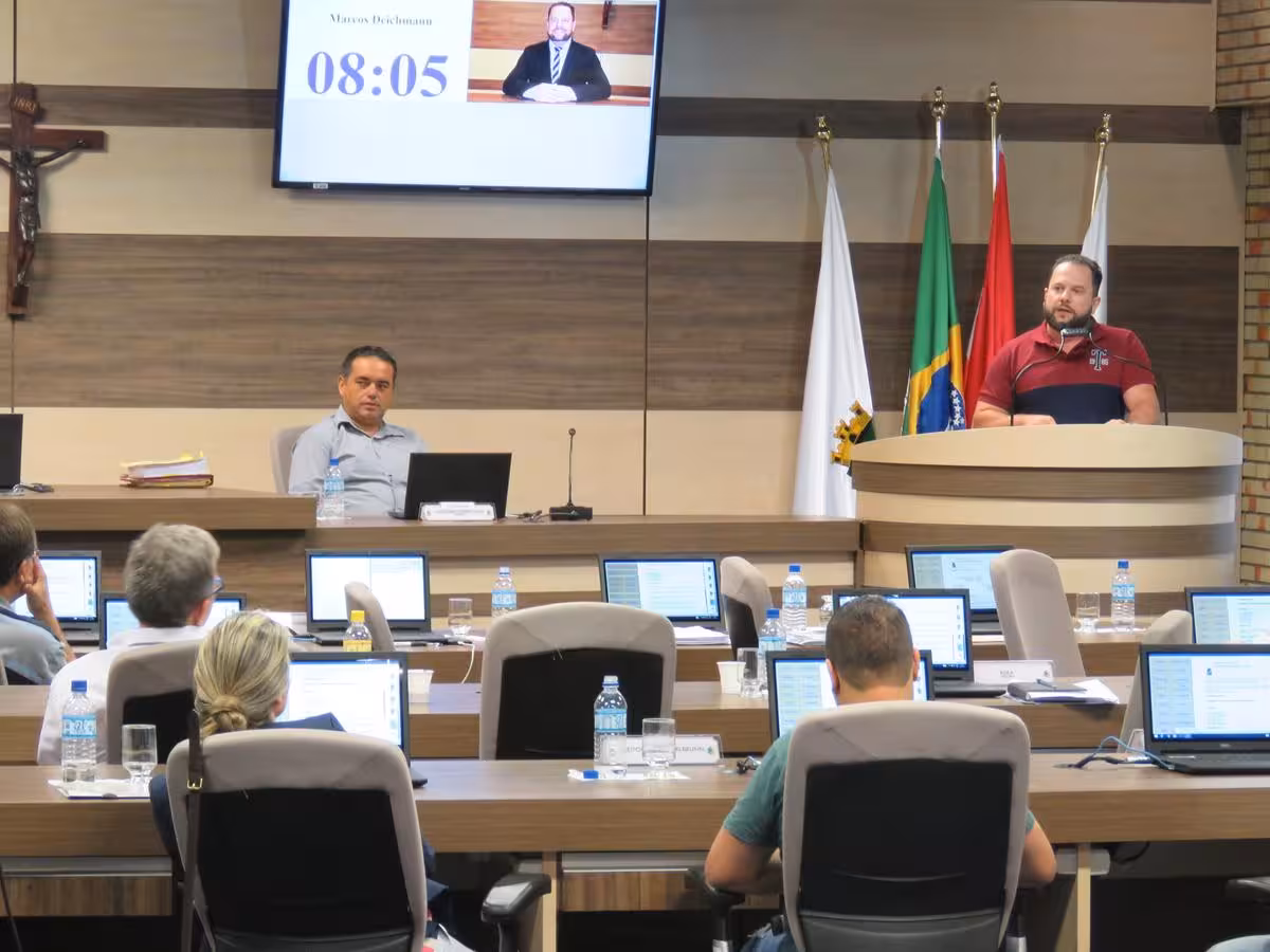 O presidente da comissão, Marcos Deichmann, usou seu tempo na tribuna para rebater as afirmações de Pereira. “Suas palavras tem cabimento, vereador, quando coloca que a população está desacreditada do político, porque o senhor é mentiroso. Vem aqui falar mal das pessoas que trabalharam por seis meses incansavelmente para se ter uma boa regulamentação”.