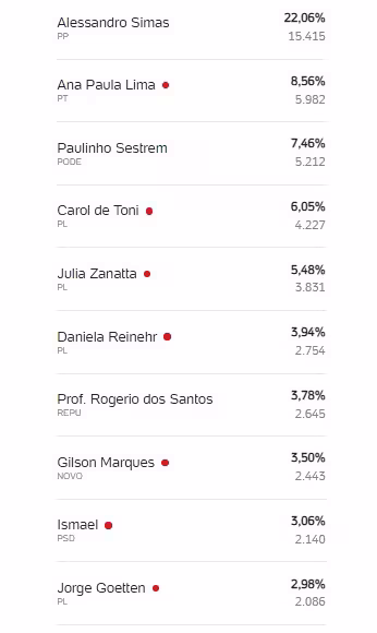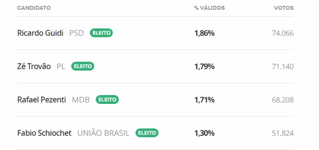 Confira o desempenho de cada candidato a deputado federal de Brusque e região:
