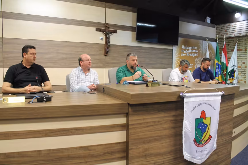 O presidente da Câmara de Vereadores de Brusque, Cassiano Tavares, o Cacá (Podemos), concedeu entrevista coletiva nesta segunda-feira, 4, para falar sobre trâmites do Legislativo em relação ao pedido de cassação do vereador Jocimar dos Santos (DC). Ele foi preso em flagrante no fim da última semana após ser denunciado pelo seu suplente, Eder Leite (DC), por possível esquema de rachadinha.