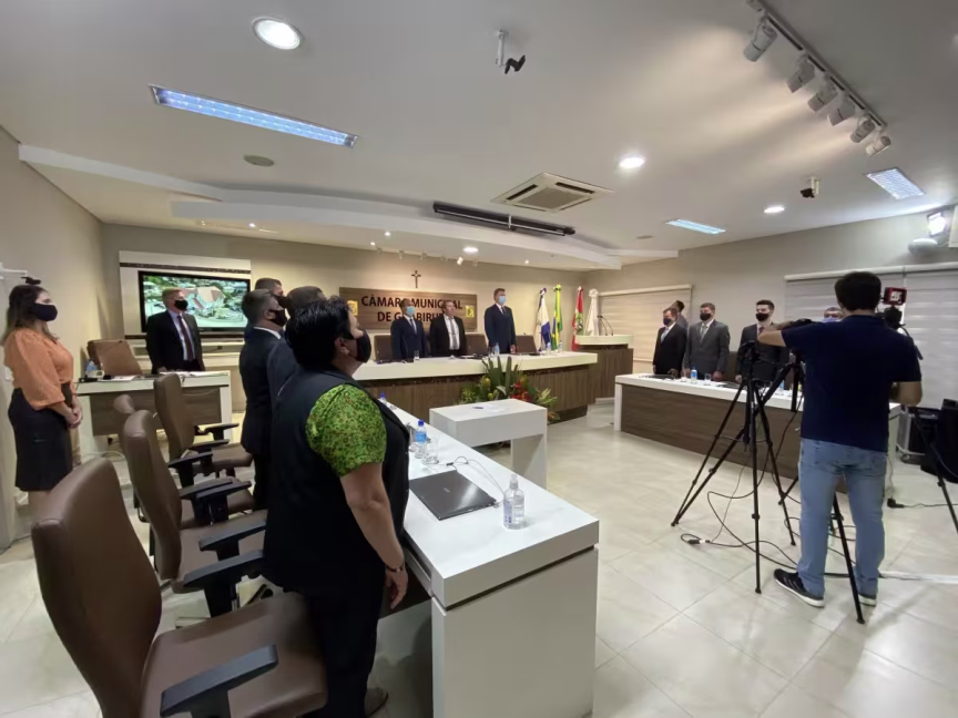 Passada a posse dos vereadores e do prefeito e vice, a sessão solene foi suspensa por 30 minutos. Na sequência, os parlamentares retornaram com as chapas para a presidência do Legislativo municipal.