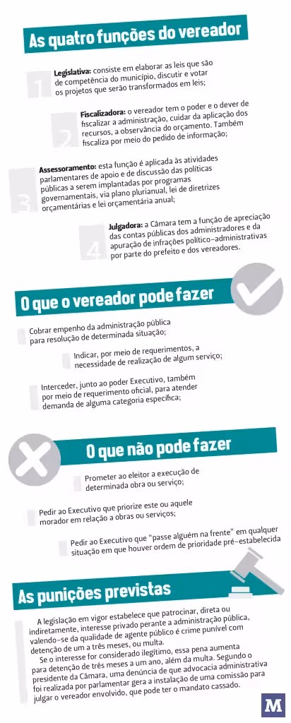 Por isso, eleitores devem ficar atentos às falsas promessas feitas por candidatos a vereador nas próximas eleições: eles não podem ordenar a execução de qualquer ação que compete à prefeitura e, se o fizerem, como nos casos citados, cometem crime e correm risco de perder o mandato.