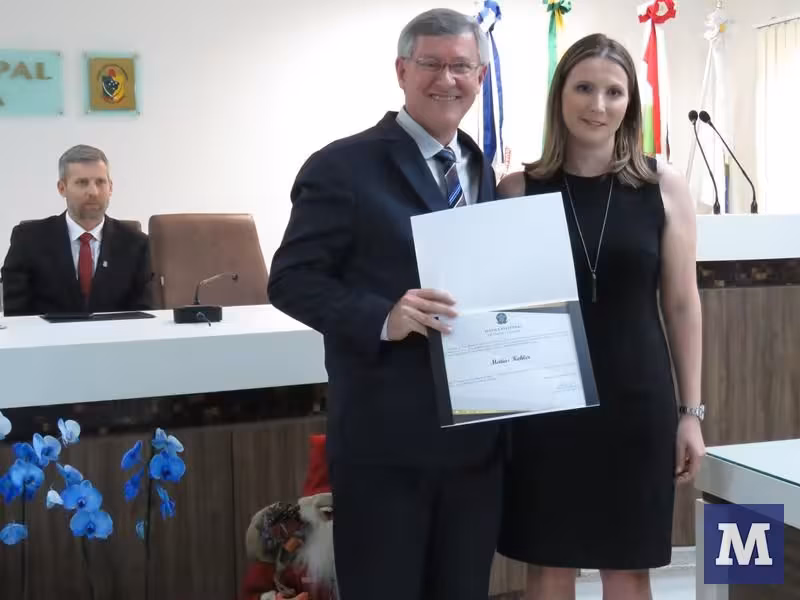 Após a entrega dos diplomas, o vereador mais votado, Harri Westarb (DEM), o Godo, discursou em nome dos parlamentares. E o prefeito Matias Kohler (PP) também falou à plateia.