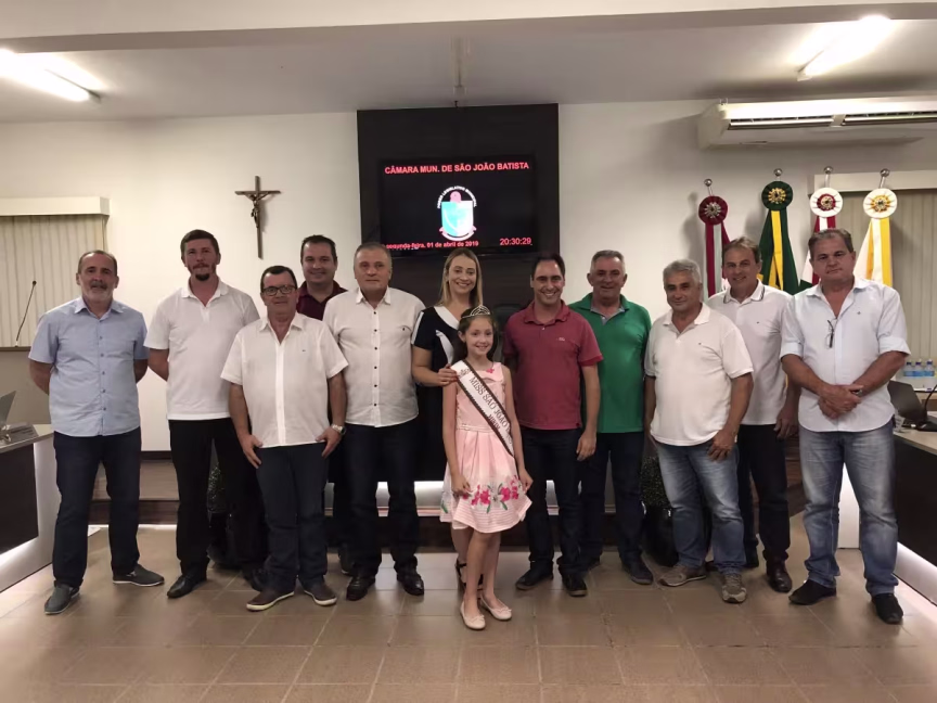 Os vereadores de São João Batista receberam, no fim da tarde desta segunda-feira, 1º, antes do início da sessão, a visita da Miss São João Batista Mirim, Hillary Nicole Silva, 8 anos. A menina estava acompanhada da mãe, Rosangela Martins, a Cristal.