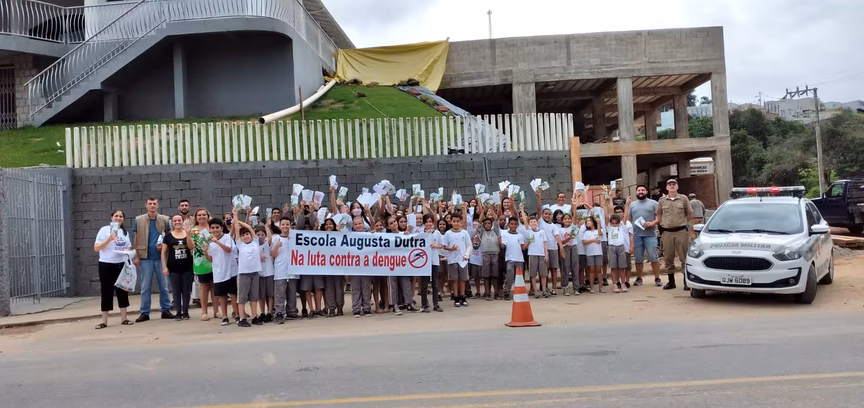 Os alunos da E.E.F Professora Augusta Dutra de Souza participaram de uma blitz educativa com o tema “Na luta contra a dengue”. A ação contou com a participação dos estudantes do 4º e 5º ano, da Vigilância Epidemiológica de Brusque e da Polícia Militar.