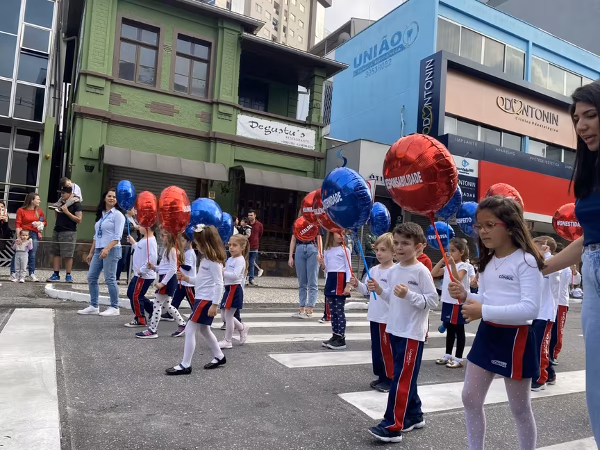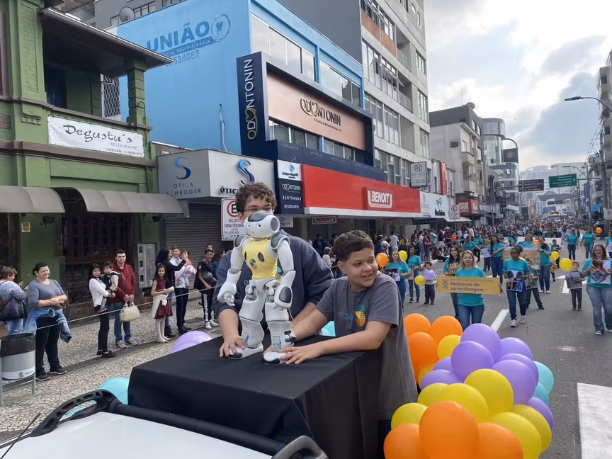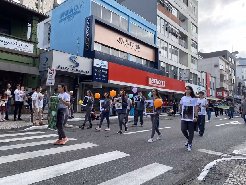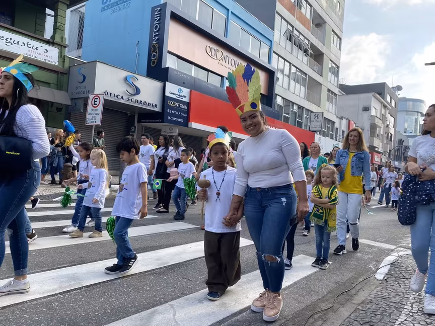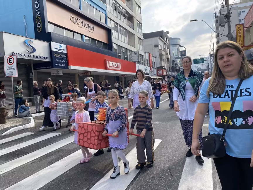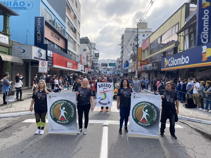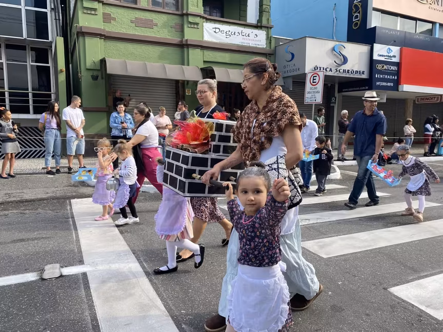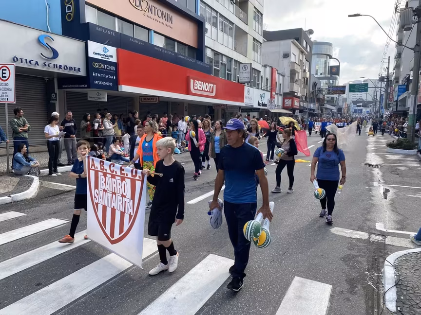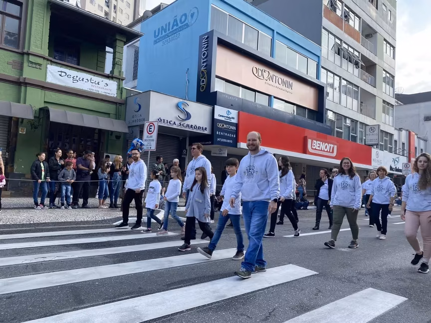 “A gente veio para prestigiar o aniversário de Brusque e divulgar a nossa escola, que fez um ano. É importante pelo retorno da rotina normal. É importante para os alunos tanto na socialização quanto no desenvolvimento também”, comenta.