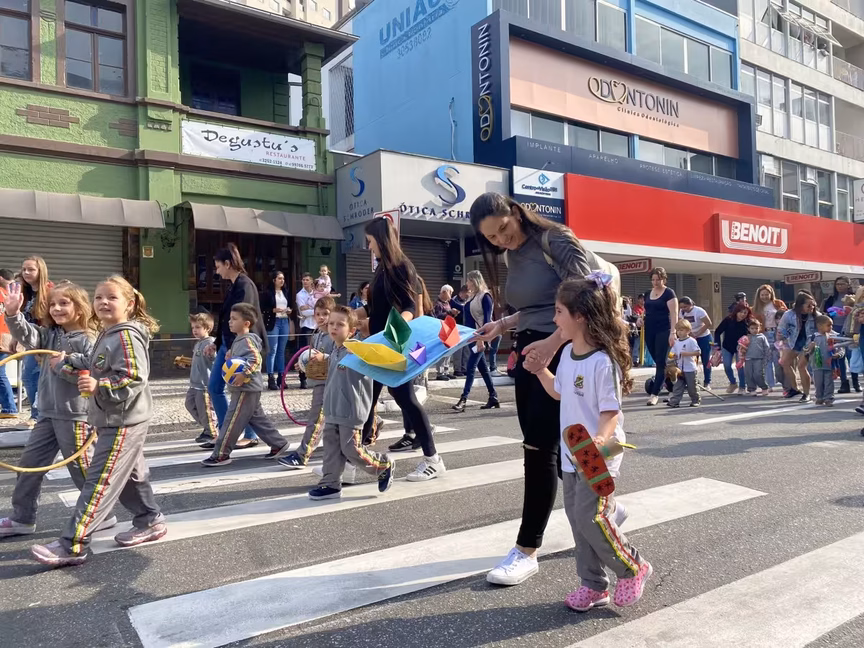 A oportunidade de celebração também levou instituições privadas, como a Inova Centro Educacional e Extracurricular. A diretora Eloisa Dalmolin ressalta a importância da presença.