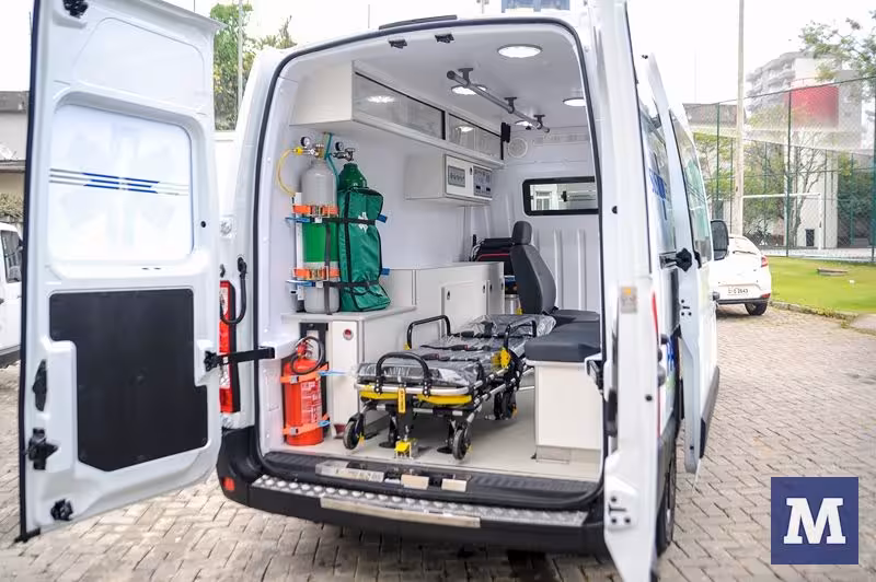 Com o reforço, serão quatro. O veículo que veio para Brusque é da marca Renault e já veio equipado para o transporte de doentes.