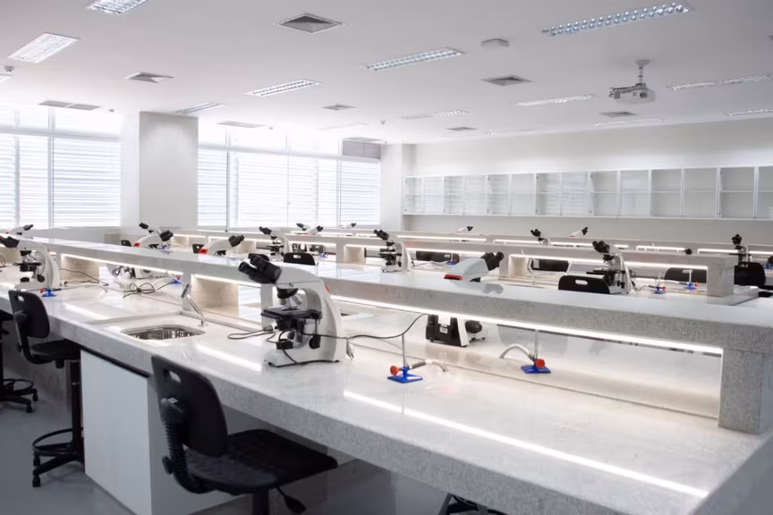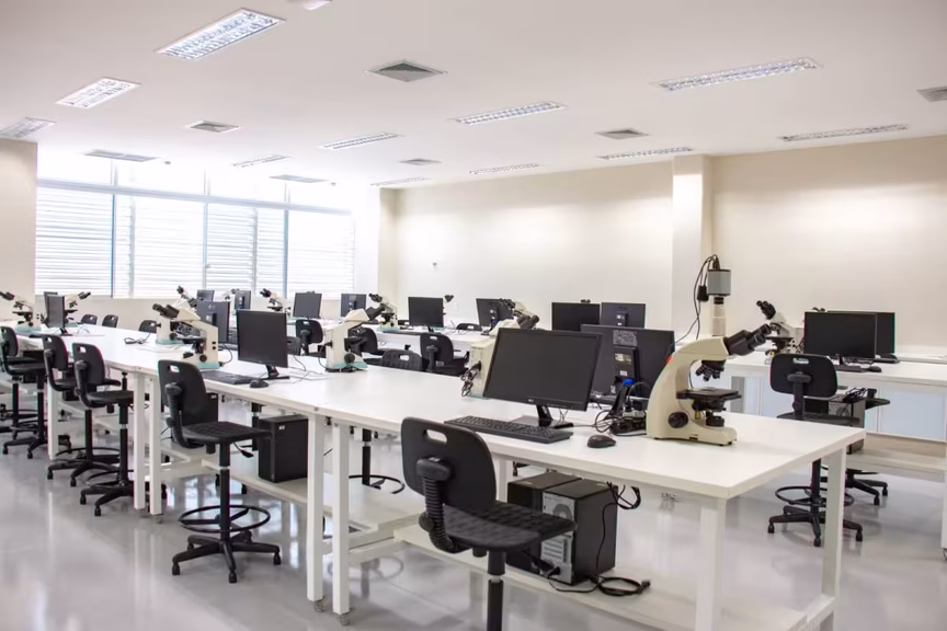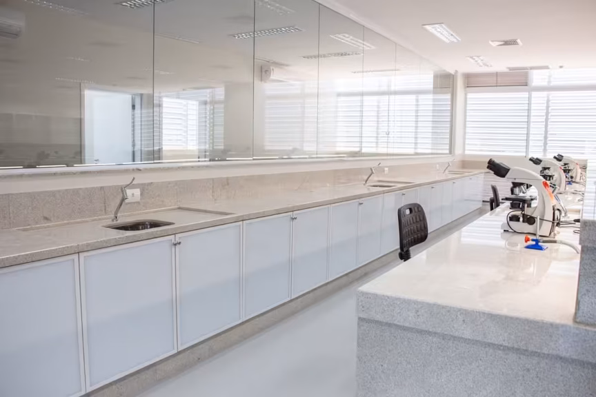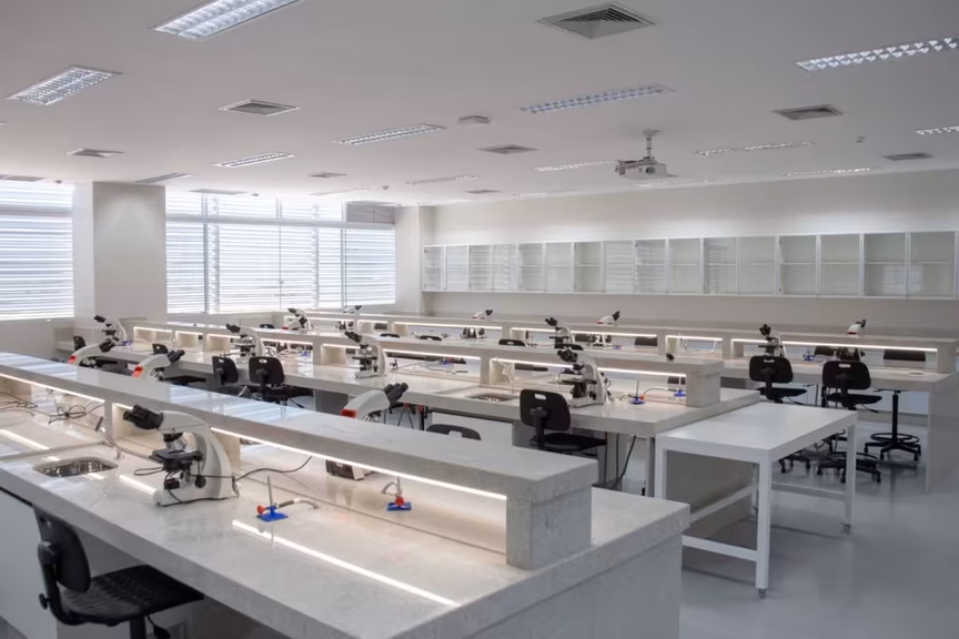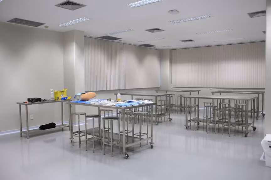 O Bloco da Saúde possui equipamentos de referência em tecnologia, com sistemas de iluminação e controle de temperatura iguais aos padrões utilizados em ambientes hospitalares.