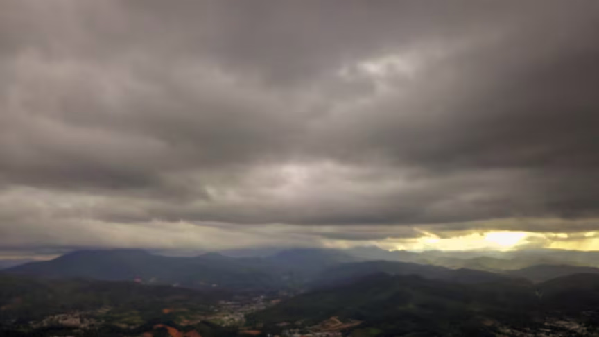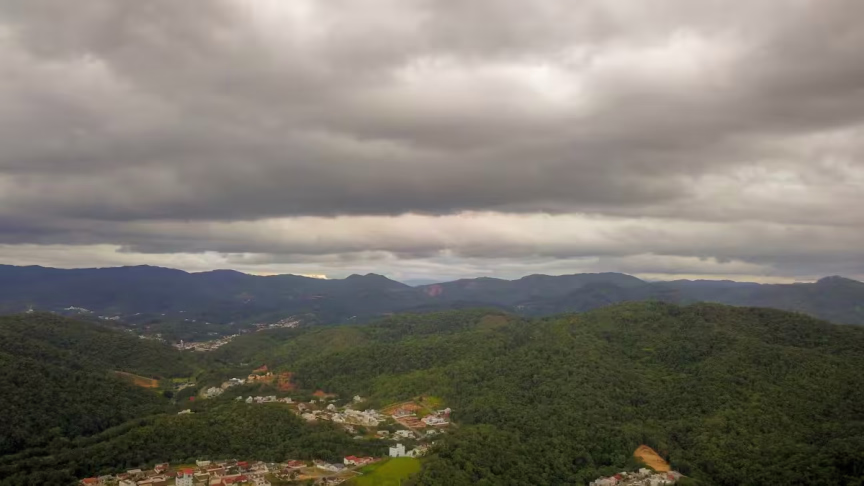 Virada do tempo observada também no Vale do Itajaí-Mirim. Depois do predomínio maior do sol em grande parte do dia, nuvens escuras se intensificaram no decorrer da tarde de hoje na região.