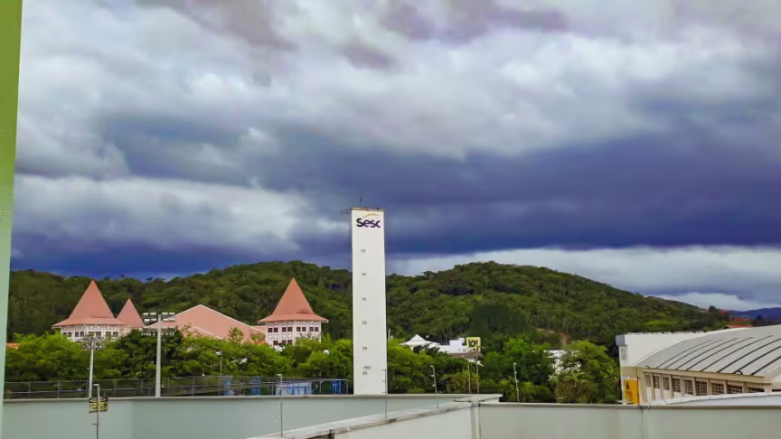 Acompanhe também as imagens das nuvens escuras presentes no céu de Brusque ao entardecer de hoje