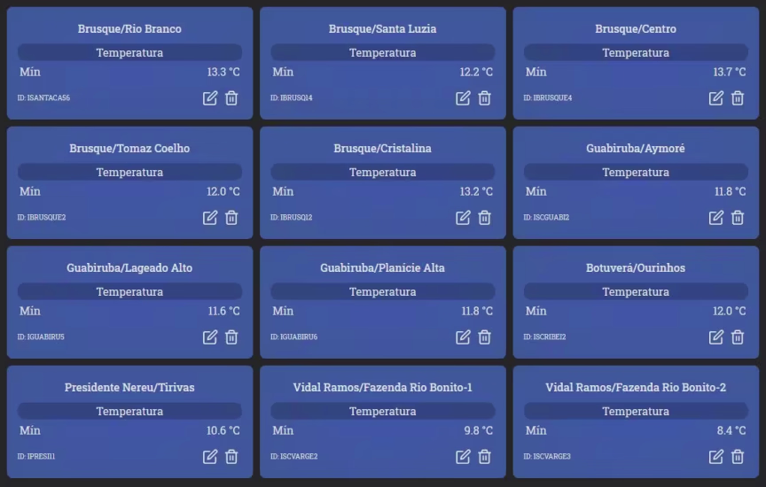 Confira abaixo como ficaram as temperaturas mínimas na madrugada e amanhecer desta sexta-feira em cada lugar descrito em anexo: